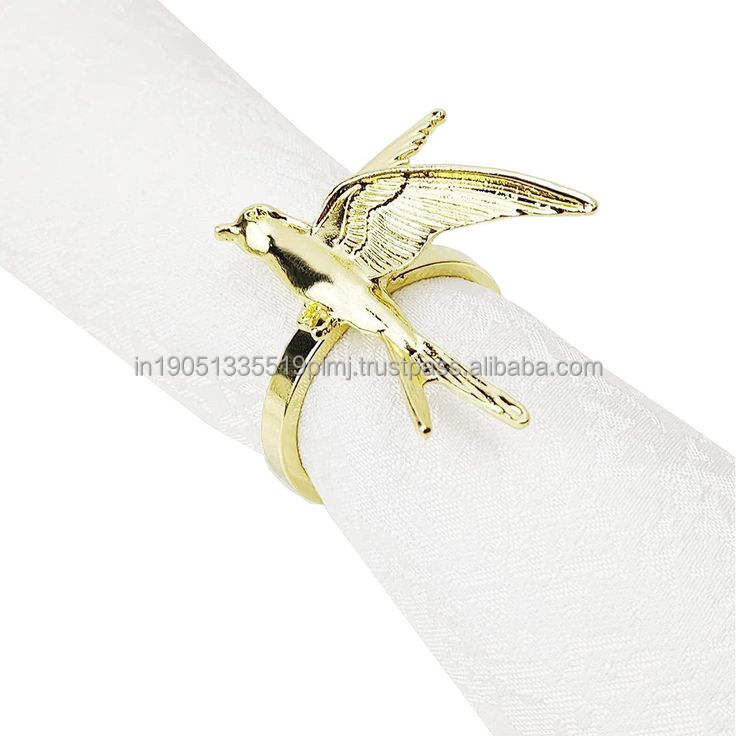 ที่ใส่ผ้าเช็ดปากรูปนกบินคุณภาพสูงสำหรับงานแต่งงาน โต๊ะโรงแรม ดีไซน์หรูหรา ที่วางผ้าเช็ดปากหรือแหวนโลหะสีทอง