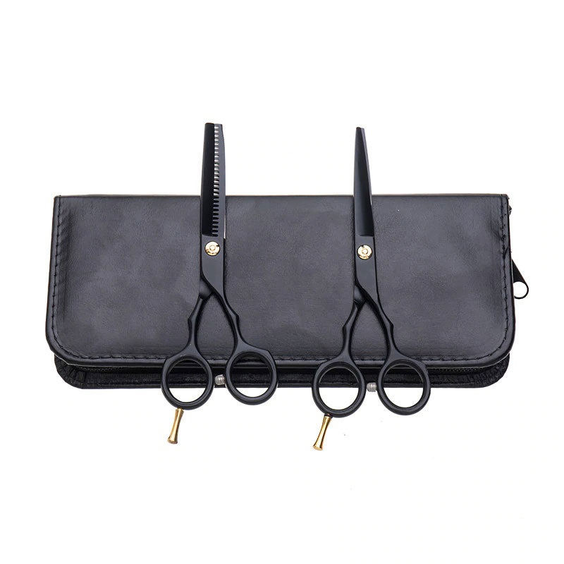 ชุดกรรไกรตัดผมคุณภาพสูงเคลือบสีดำสำหรับร้านเสริมสวยมืออาชีพ พร้อมกรรไกรซอยผม อุปกรณ์ทำผมเสริมสวย