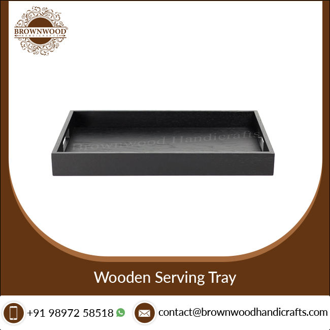 ถาดเสิร์ฟไม้พร้อมที่จับชื่อผลิตภัณฑ์