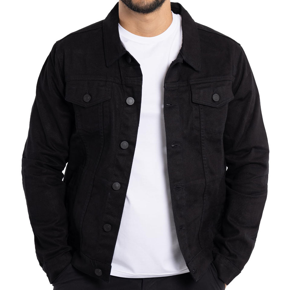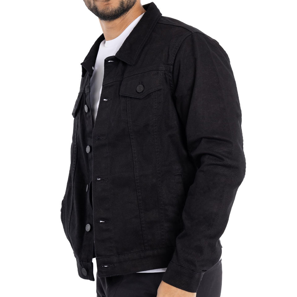 แจ็กเก็ตยีนส์สีดำคุณภาพสูงแจ็กเก็ตผ้าเดนิมติดกระดุมทำจากผ้าฝ้ายพรีเมียมโลโก้ออกแบบได้ตามต้องการ