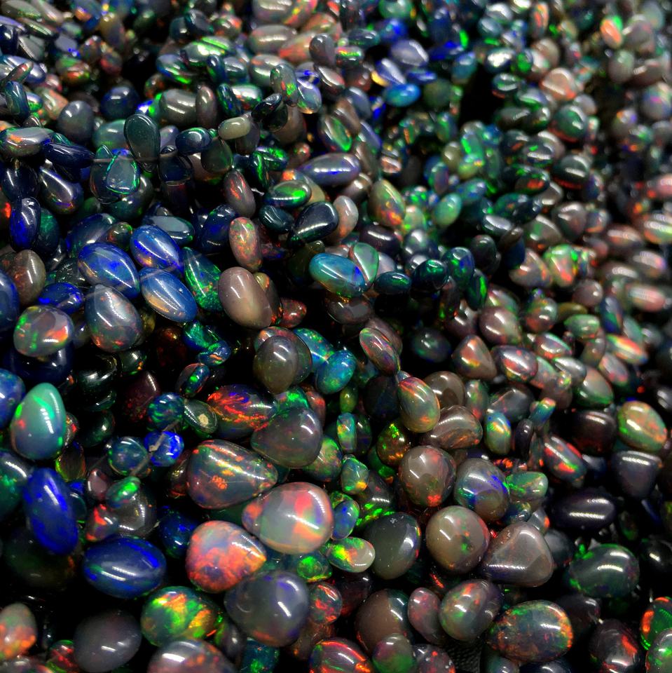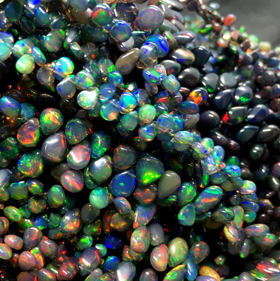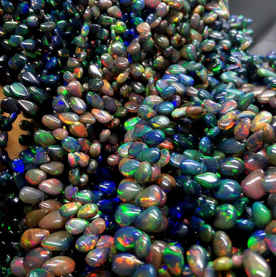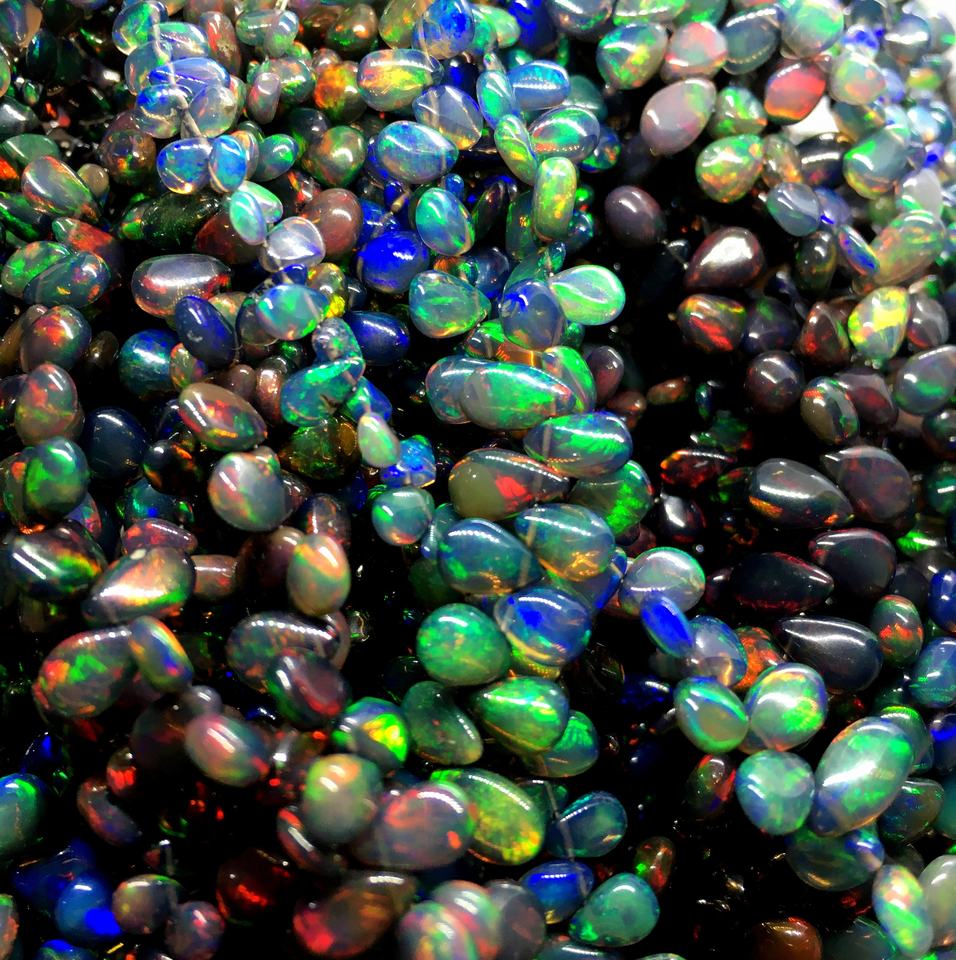 ลูกปัดโอปอลเอธิโอเปียสีดำคุณภาพสูงพลอยหลวมรูปทรงลูกแพร์ธรรมดาเหมาะสำหรับการทำเครื่องประดับขายส่งราคาต่อกะรัต