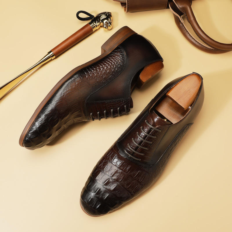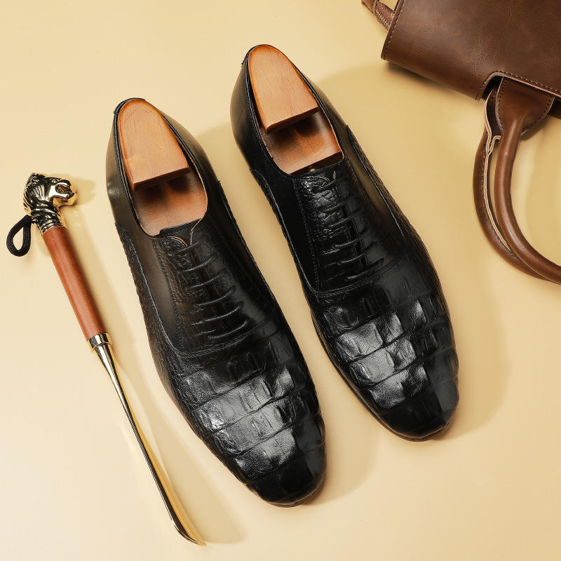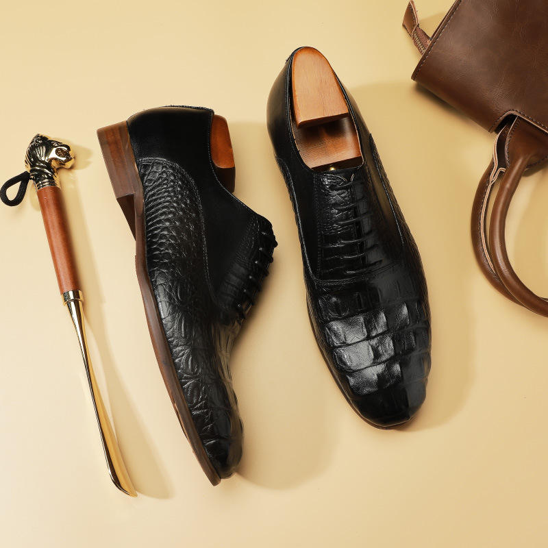 รองเท้าหนังผู้ชายคุณภาพสูงสีดำ แฟชั่นธุรกิจ รองเท้าทรงทางการ ลายปั๊ม ทันสมัย รองเท้าโลฟเฟอร์ รองเท้าเดรส และรองเท้าอ็อกซ์ฟอร์ด