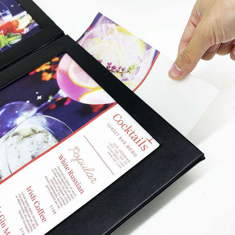 สมุดเมนูหนังเทียมสีดำคุณภาพสูง พร้อมไฟ LED แบบสองหน้า ขนาดสั่งทำได้ พร้อมปกเมนูแบบมีไฟ LED สำหรับบาร์และคลับ