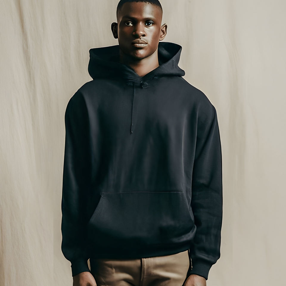 เสื้อฮู้ดสีดำสำหรับผู้ชายสีดำล้วนสีดำเน้นการส่งออก