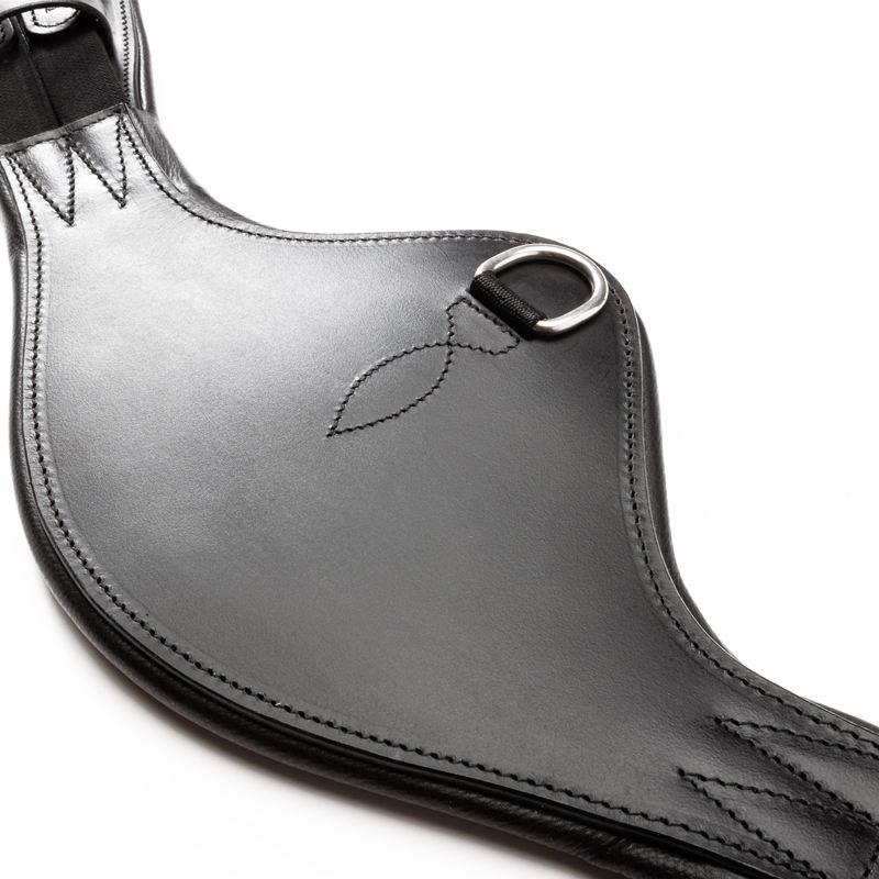 สายรัดอานม้าหนังแท้สีดำคุณภาพสูง พร้อมห่วงรูปตัว D ตรงกลาง หัวเข็มขัดแบบลูกกลิ้งสแตนเลส ดีไซน์โค้งรับรูปร่าง ADIBA