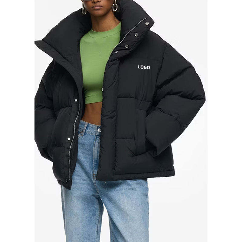 เสื้อแจ็คเก็ตพัฟเฟอร์สีน้ำเงินกรมท่าคุณภาพสูงสำหรับผู้หญิง แบบซิปเต็มตัว อุ่นสบายสำหรับฤดูหนาว รับผลิตตามแบบ OEM เสื้อคลุมกันหนาวแบบพองตัวสำหรับผู้หญิง