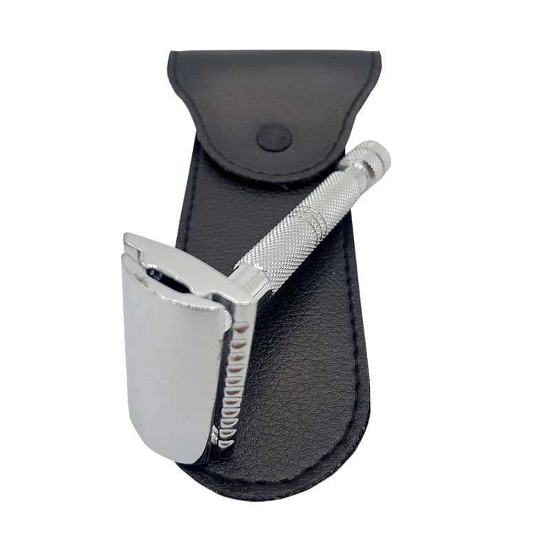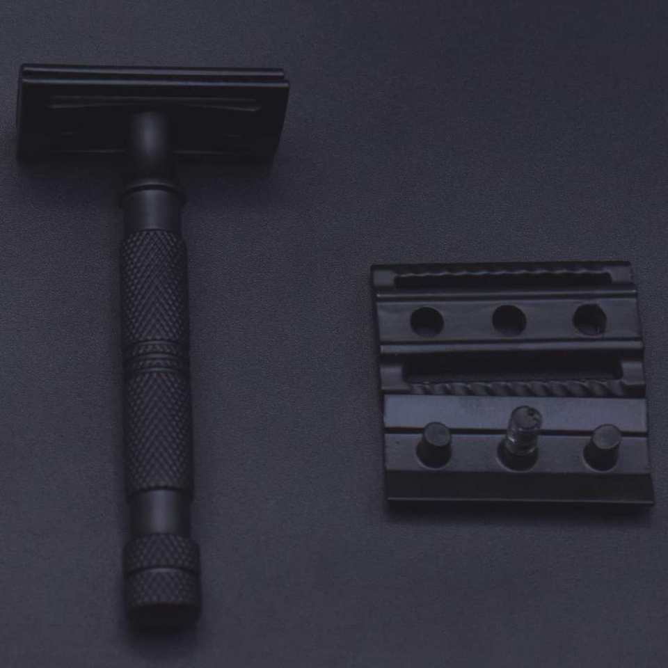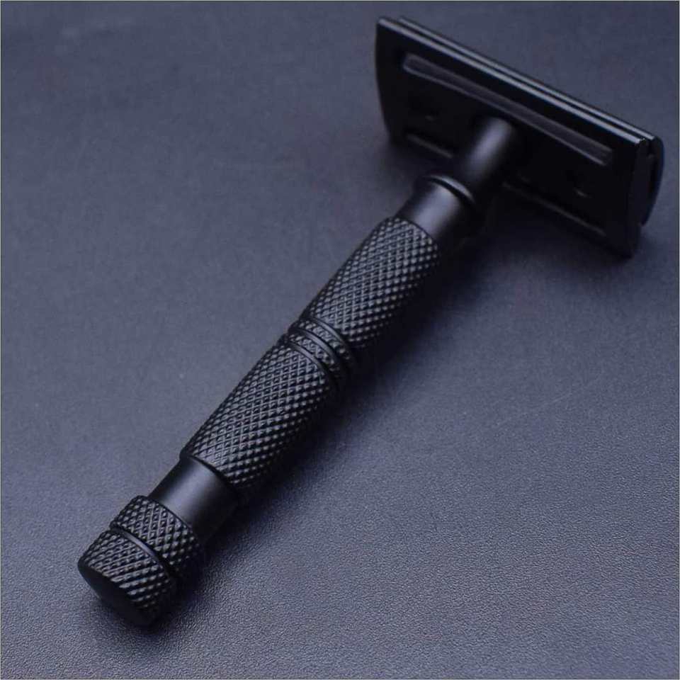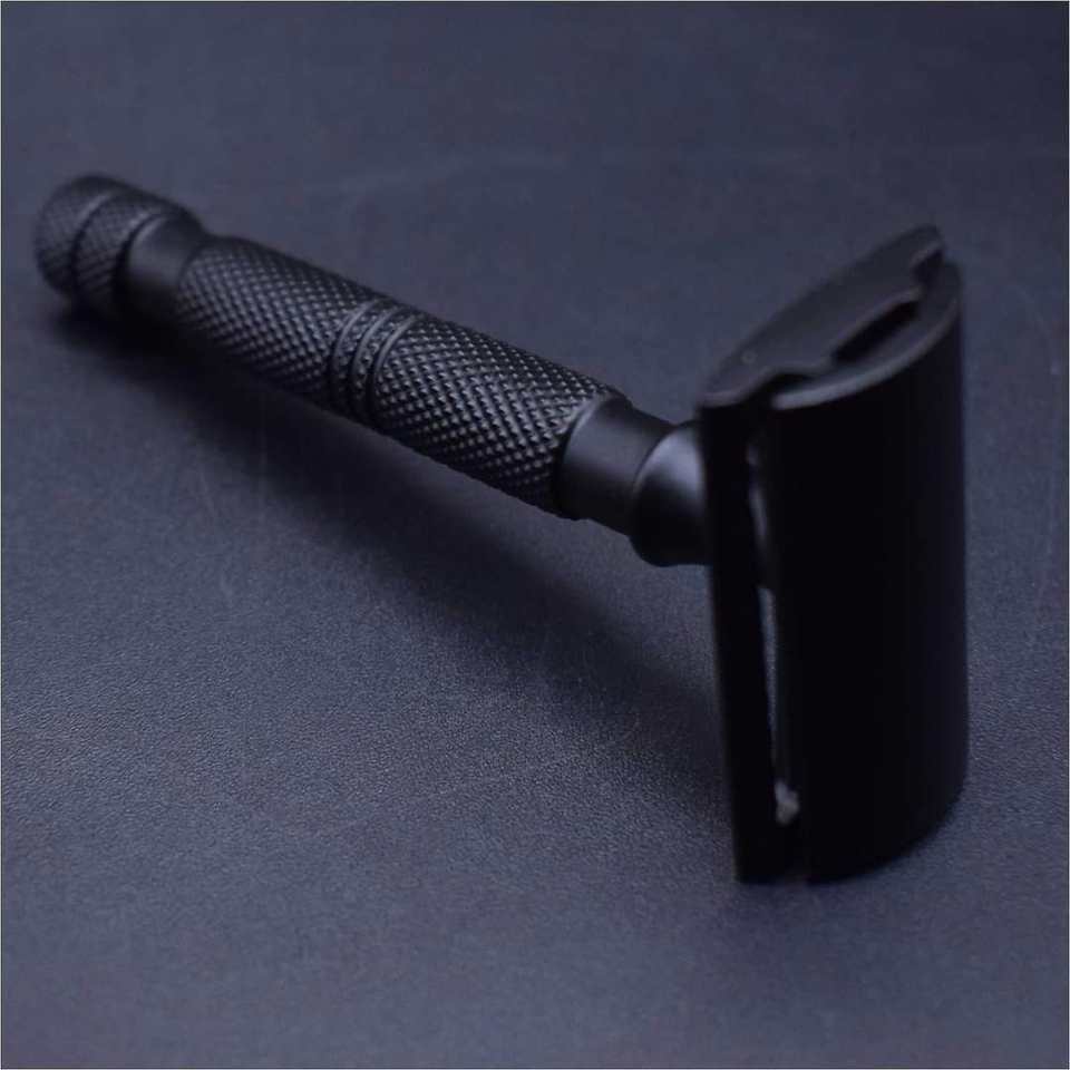 มีดโกนหนวดสแตนเลสสตีลเคลือบด้านสีดำมีดโกนปลอดภัยสำหรับช่างตัดผมของผู้ผลิตโดยตรง