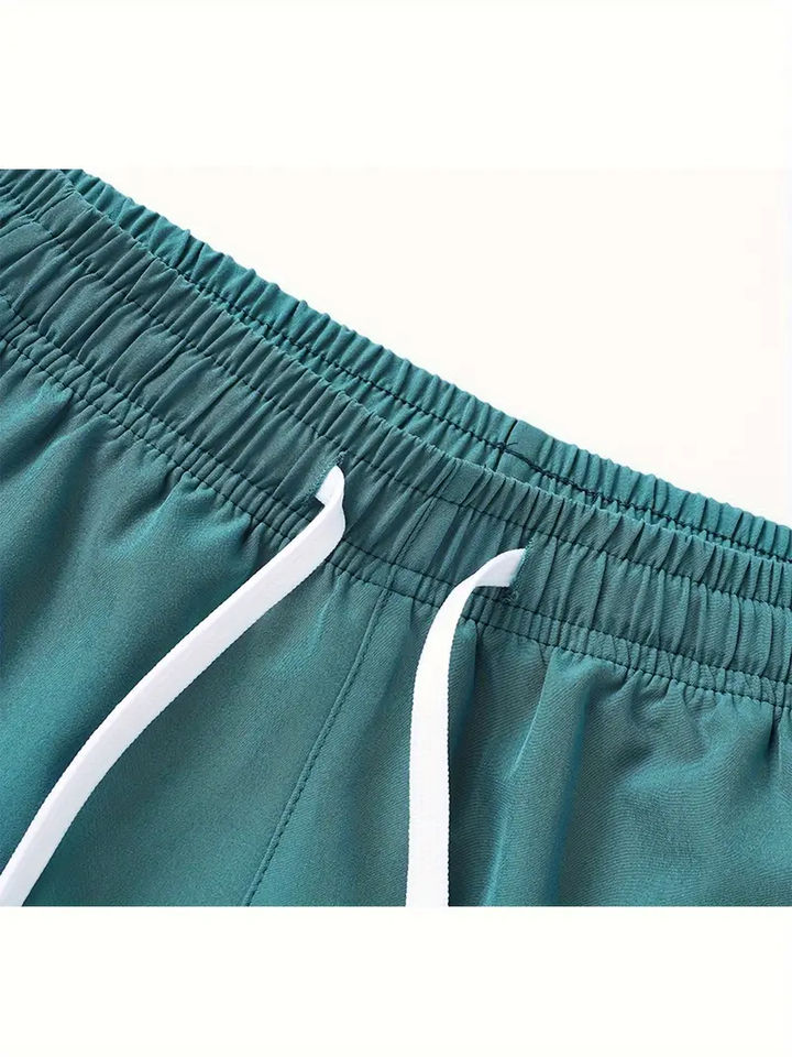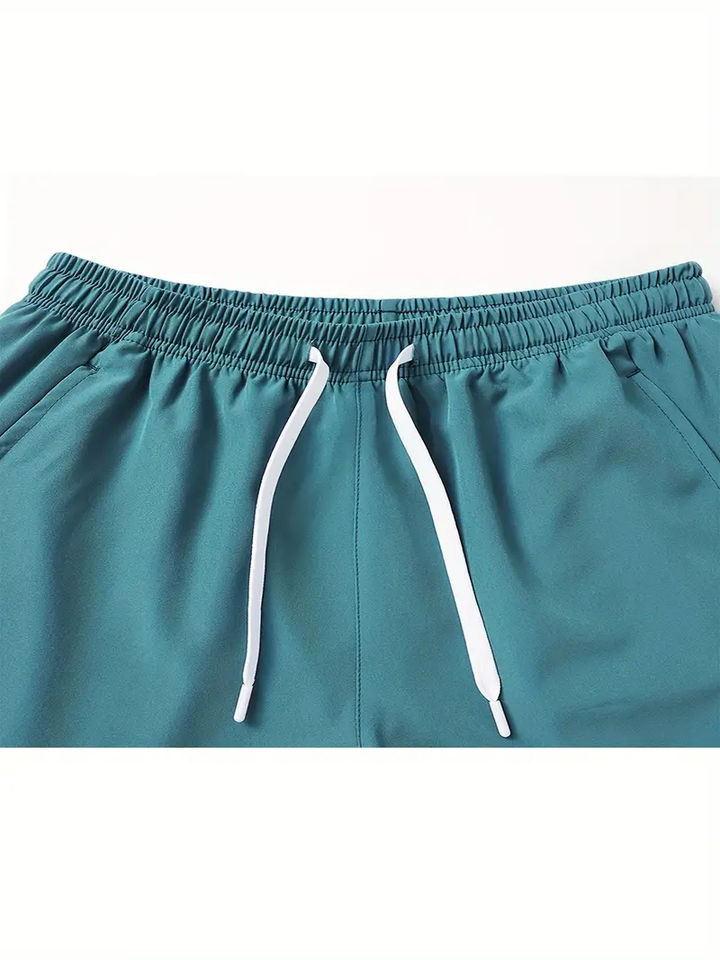 กางเกงขาสั้นไมโครไฟเบอร์สำหรับผู้ชายสีดำพร้อมผ้าตาข่ายเชือกผูกโลโก้ตามสั่ง