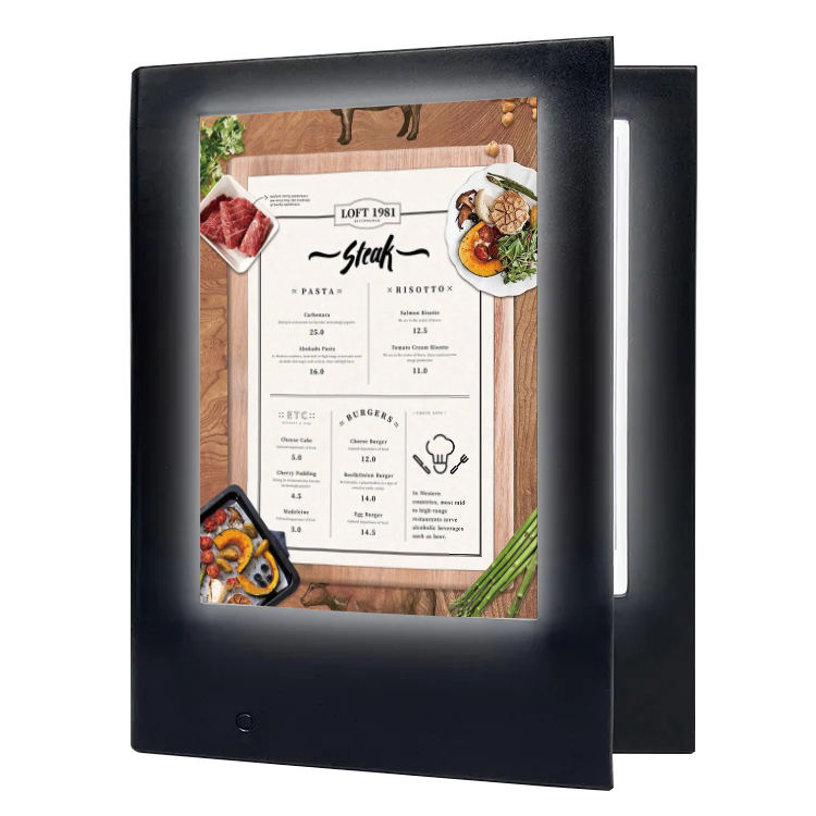 ที่ใส่เมนูหนังสือแบบ LED คุณภาพสูง สีดำ 2 แผง 4 ดวงไฟ พร้อมไฟส่องสว่าง หนังสือเมนูแบบชาร์จไฟได้