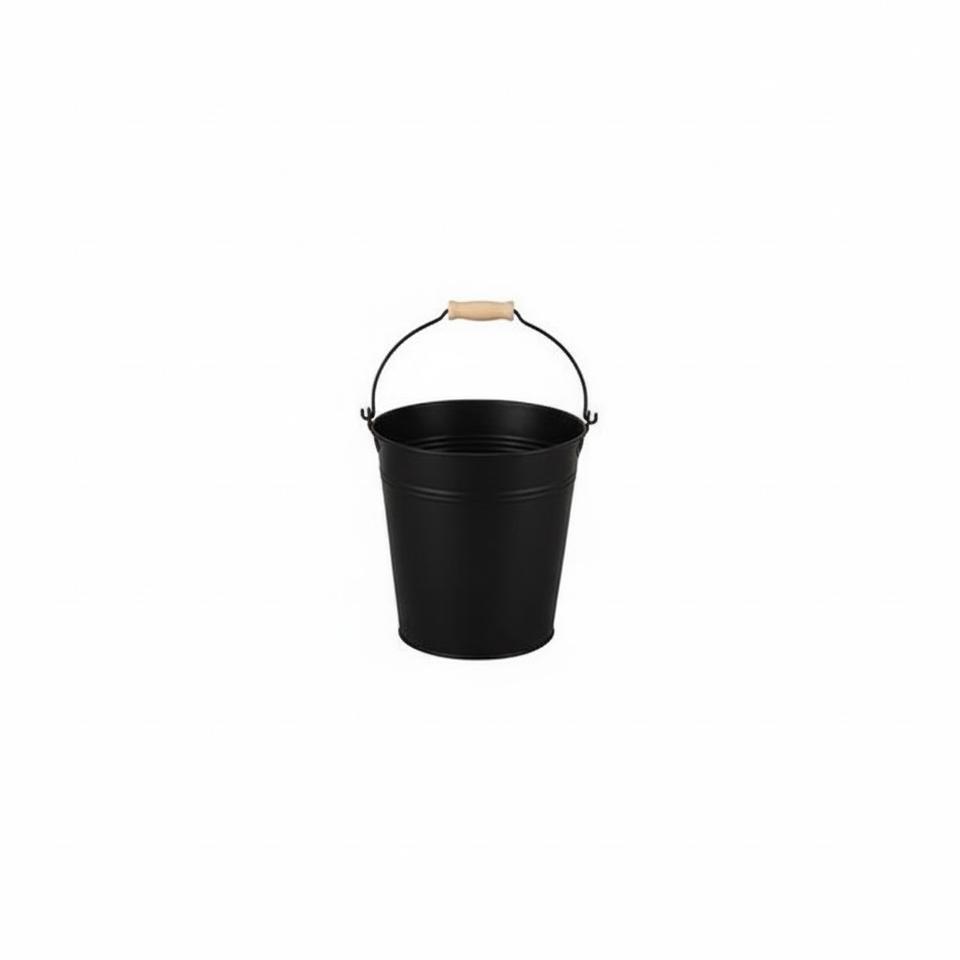 ถังโลหะสีดำคุณภาพสูงพร้อมหูจับไม้ กระถางปลูกต้นไม้ในสวน และถังน้ำแข็งสำหรับใช้ในครัวเรือน ลดราคา