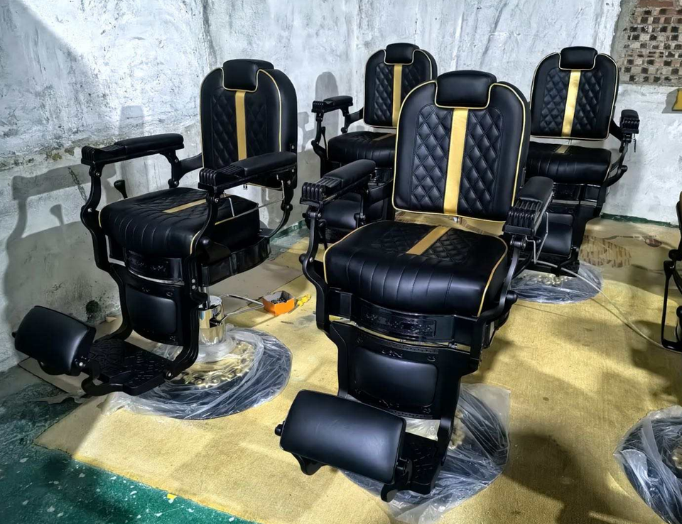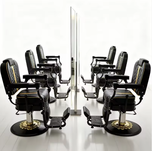 เก้าอี้ทำผมทรงหรูหราคุณภาพสูงโครงโลหะสีดำสำหรับร้านเสริมสวย เก้าอี้ตัดผมแบบกำหนดเองสำหรับร้านตัดผม