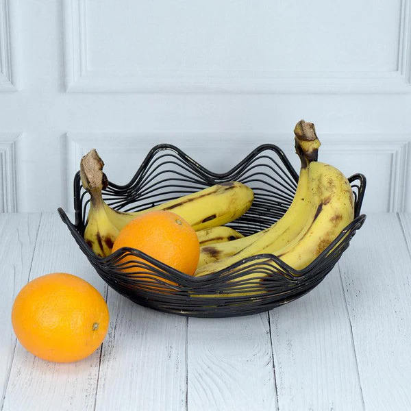 ตะกร้าเก็บผลไม้โลหะสีดำดีไซน์แบบเปิดด้านบนพร้อมโครงสร้างเหล็กบ้านห้องครัวจัดระเบียบโดยไม่มีฝาปิด