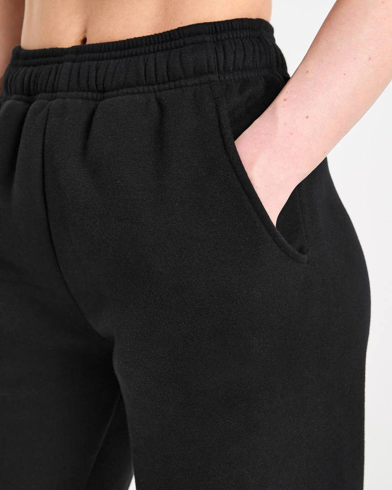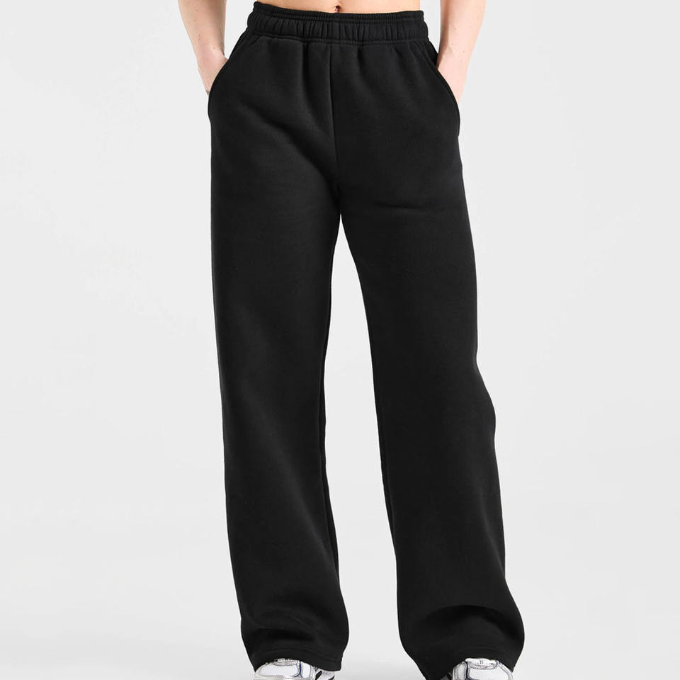 กางเกงจ็อกเกอร์ขายาวทรงตรงสีดำคุณภาพสูงสำหรับผู้หญิง ผ้าฟลีซเนื้อนุ่ม 100% ผ้าฝ้าย กางเกงวอร์มผู้หญิง
