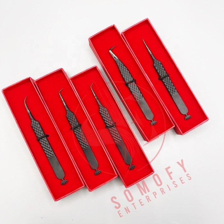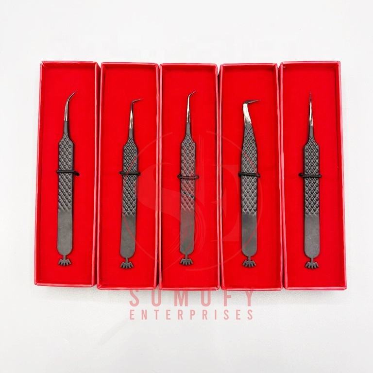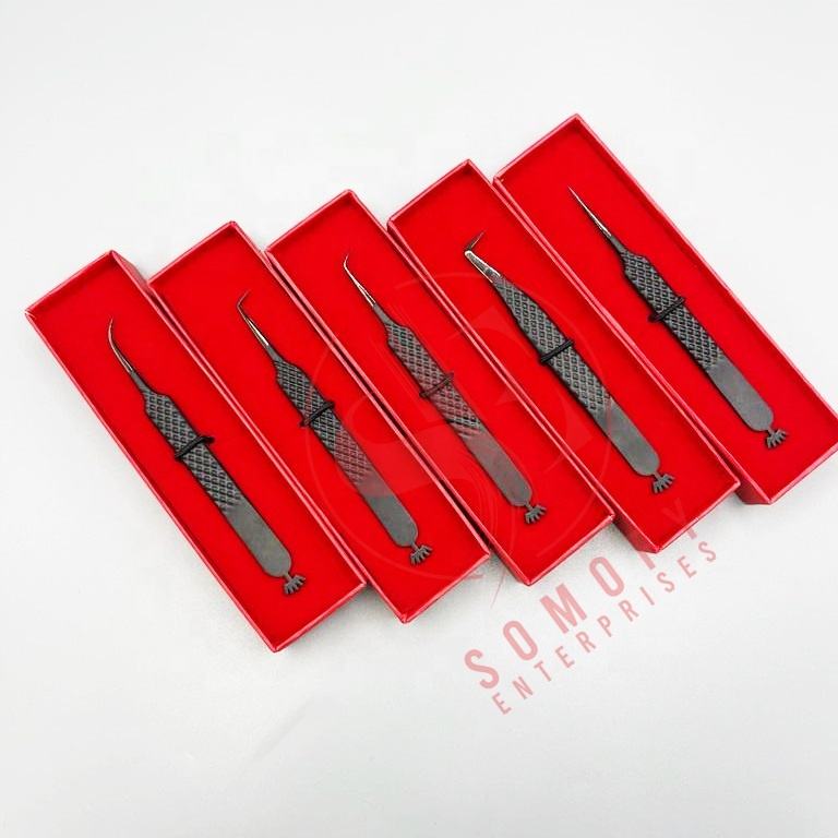 แหนบปลายแหลมพลาสม่าสีดำพร้อมดีไซน์มงกุฎทำจากสเตนเลสสตีลความแข็งที่ดีที่สุด