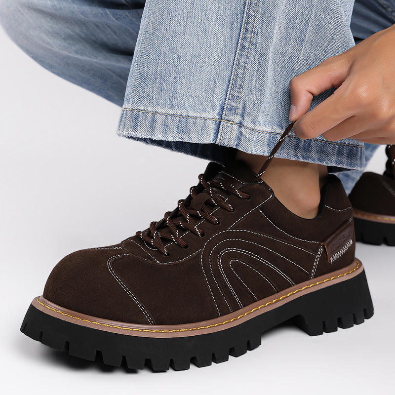 รองเท้าหนังสีดำคุณภาพสูง สไตล์อังกฤษ ส้นซ่อนแบบเรโทร อเมริกัน หัวรองเท้าทรงหนา