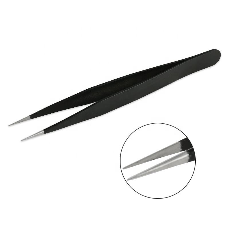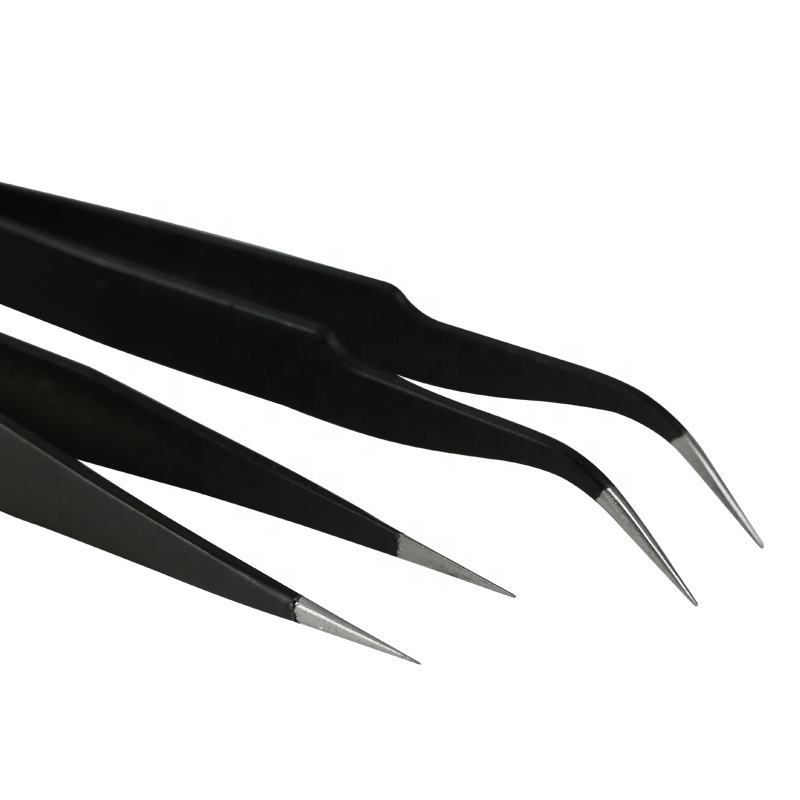 ชุดแหนบต่อขนตาสแตนเลสสีดำเคลือบผง2ชิ้นอุปกรณ์แยกความงาม