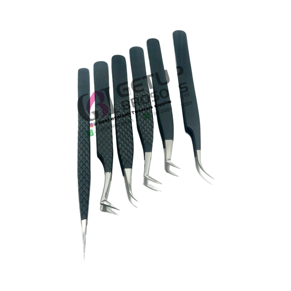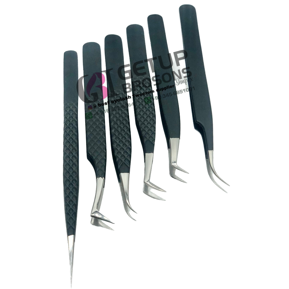 แหนบต่อขนตาสแตนเลสหัวเงินเคลือบผงสีดำสไตล์ที่แตกต่างกัน