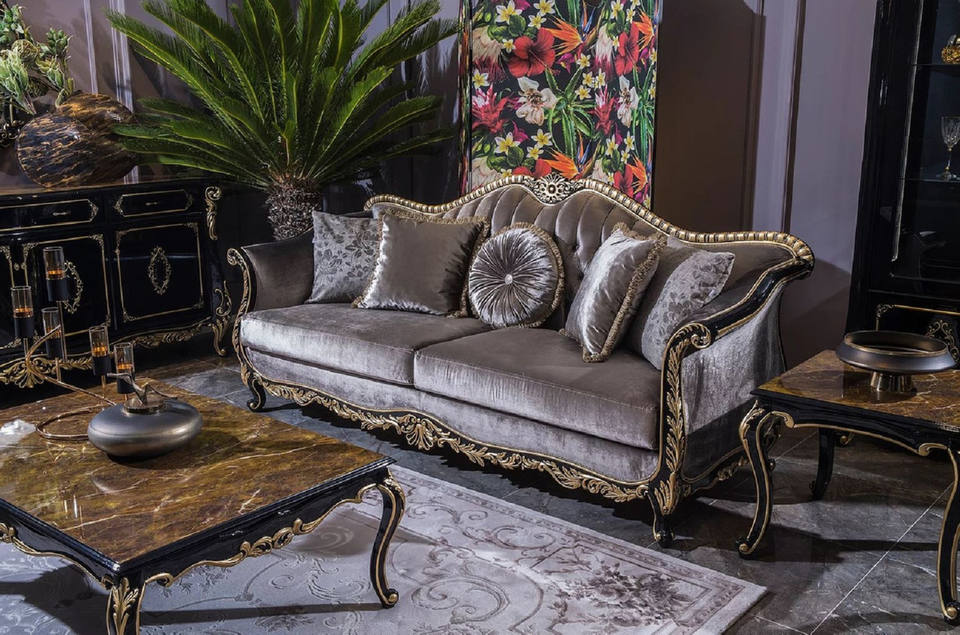 โซฟาไม้เนื้อแข็งสีดำคุณภาพสูง งานแฮนด์เมดจากวัสดุชั้นเลิศ เหมาะสำหรับห้องนั่งเล่นในอพาร์ตเมนต์หรือวิลล่า