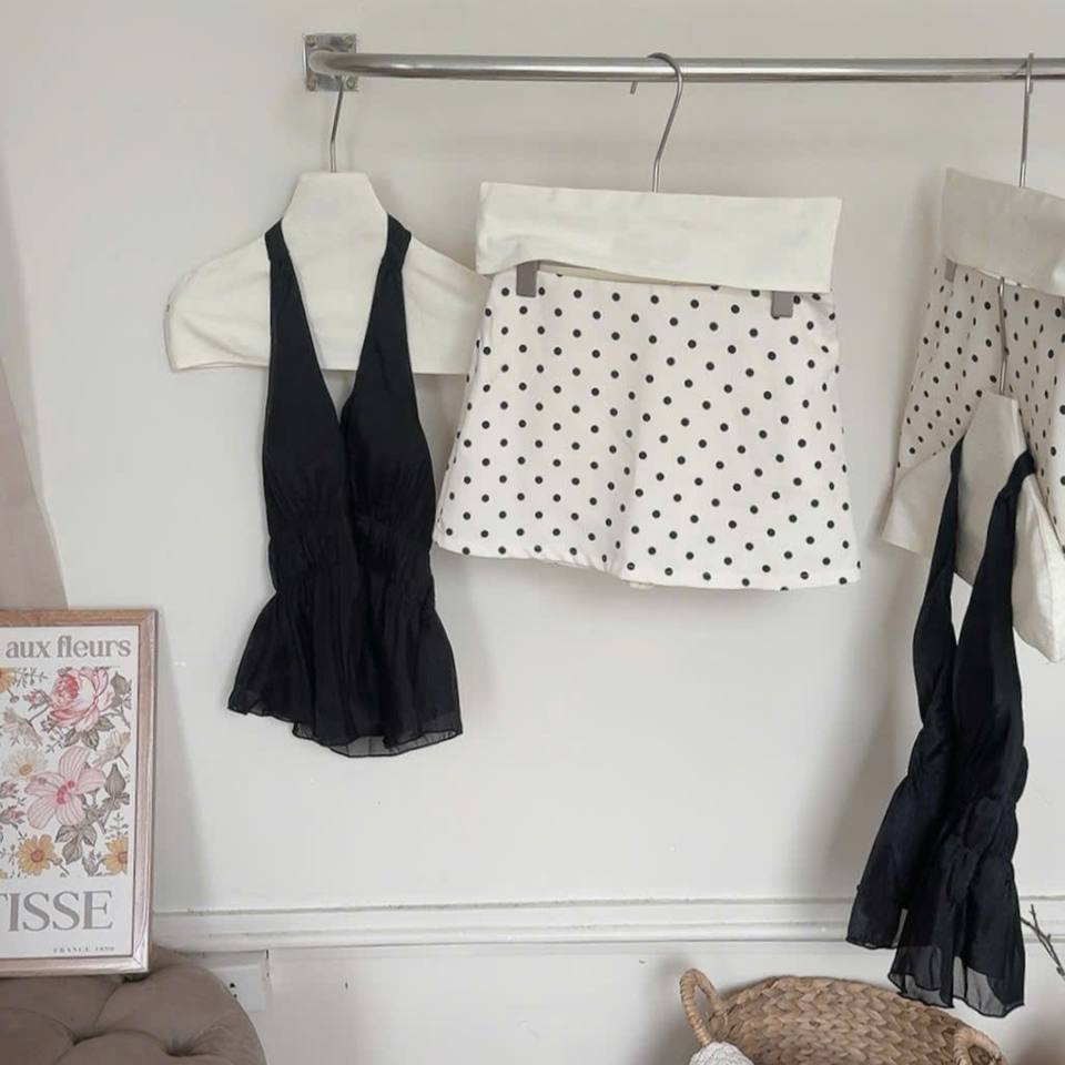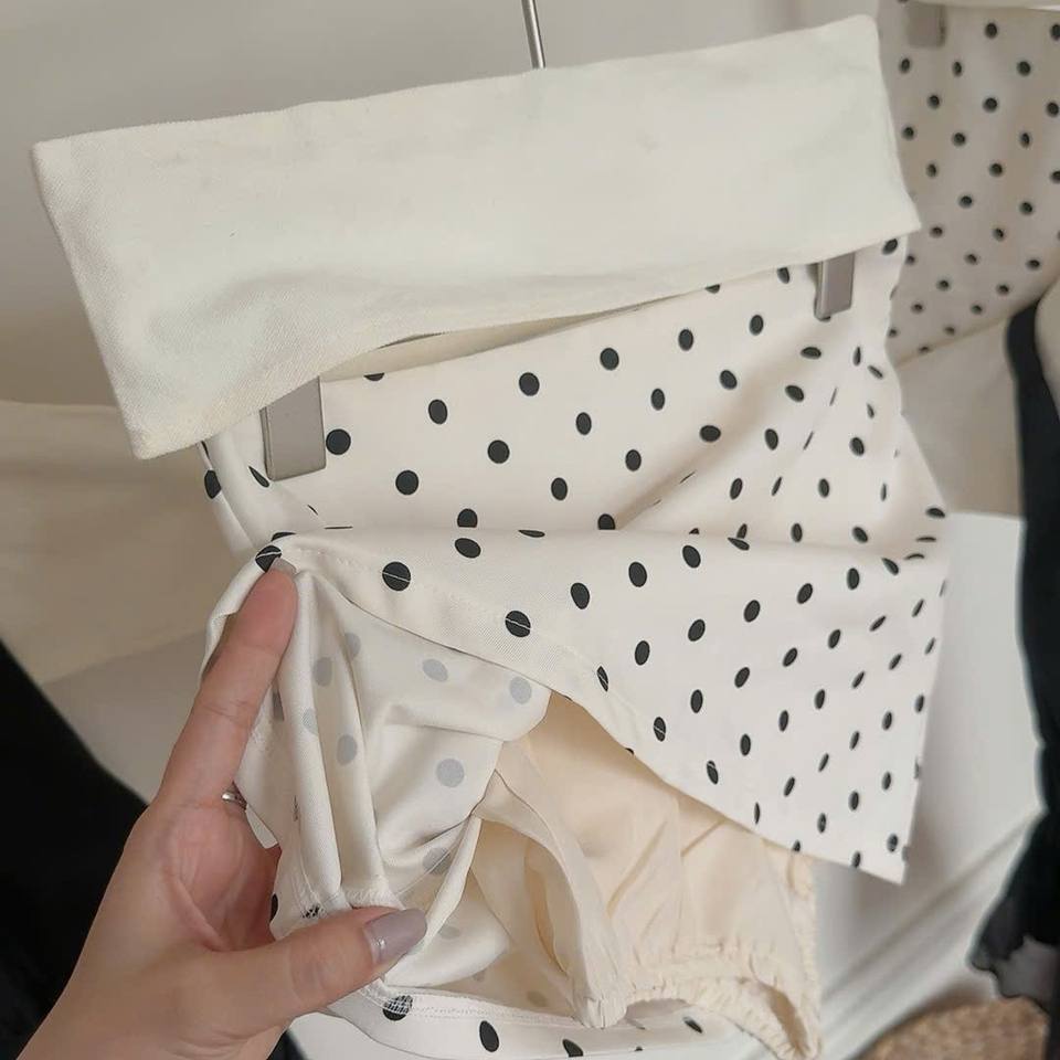 ชุดเสื้อกล้ามสีดำคุณภาพสูงและกระโปรงลายจุด สไตล์หวานๆ แฟชั่นผู้หญิง ขายส่ง