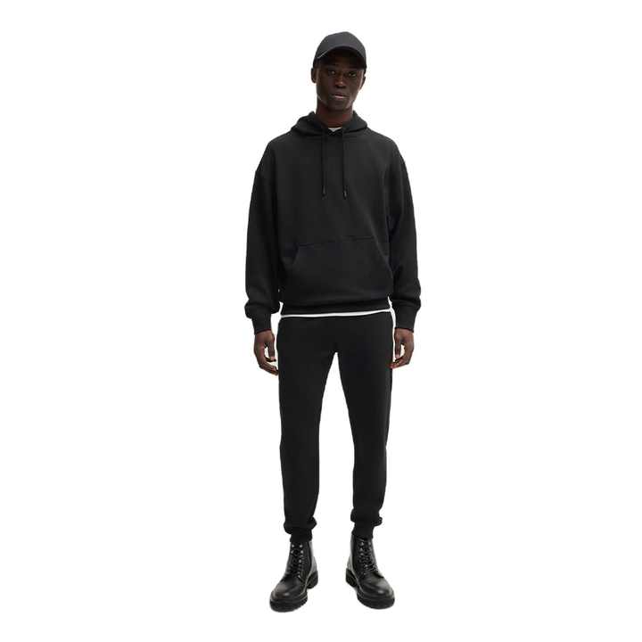 ชุดเสื้อผ้า2ชิ้นแบบสวมหัวมีฮู้ดแบบสวมหัวผ้าคอตตอนเนื้อนุ่มมีกระเป๋าแบบจิงโจ้และกางเกงสำหรับวิ่ง