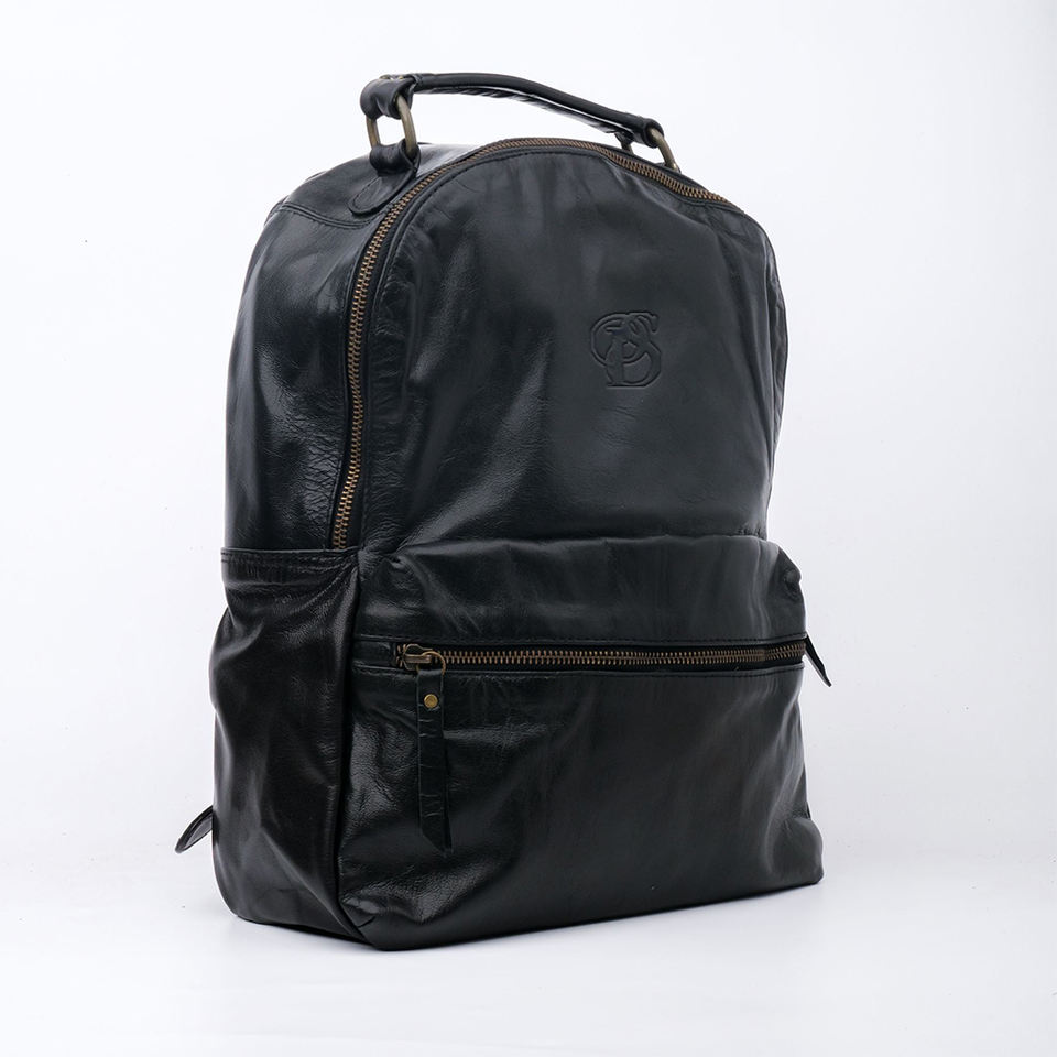 กระเป๋าเป้หนังโพลีเอสเตอร์สีดำคุณภาพสูงสำหรับผู้ชายดีไซน์เนอร์ตัวจริงออกแบบโลโก้ได้ตามต้องการความจุขนาดใหญ่กันน้ำสำหรับการเดินทาง
