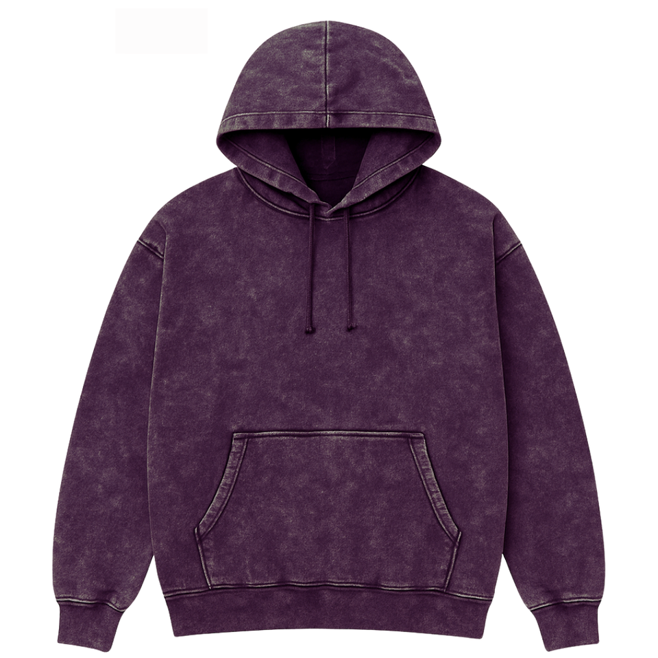 เสื้อฮู้ดดี้คอกลมสีดำวินเทจคุณภาพสูง ขายส่ง รับสกรีนโลโก้ เสื้อโอเวอร์ไซส์ ล้างสีแบบ Acid Wash สำหรับงานพิมพ์