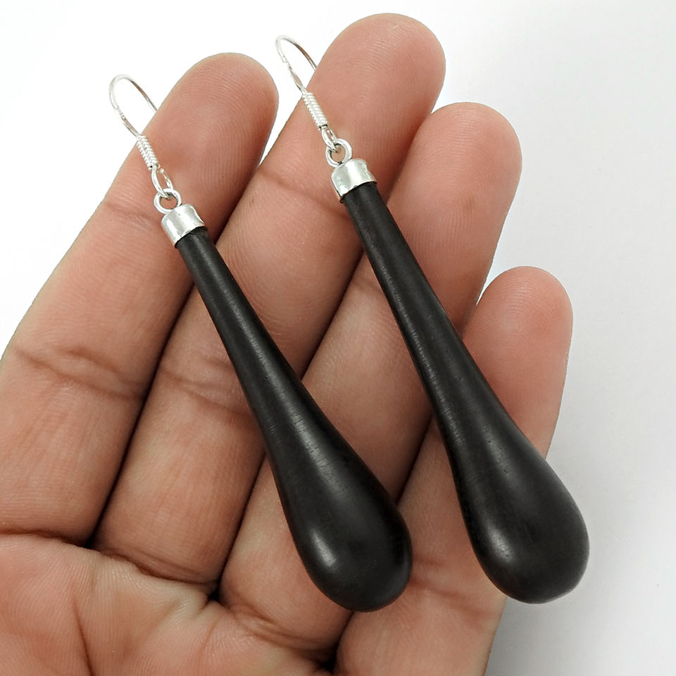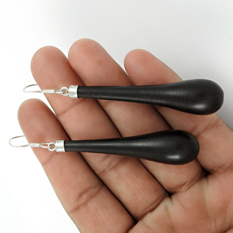 คุณภาพสูงสีดําไม้ผู้หญิงแฟชั่นต่างหูการออกแบบที่ไม่ซ้ํากันเครื่องประดับพิเศษ 925 เงินสเตอร์ลิงราคาขายส่งซัพพลายเออร์
