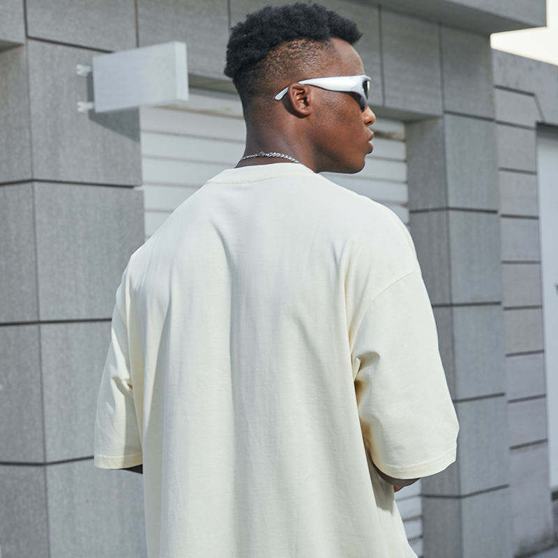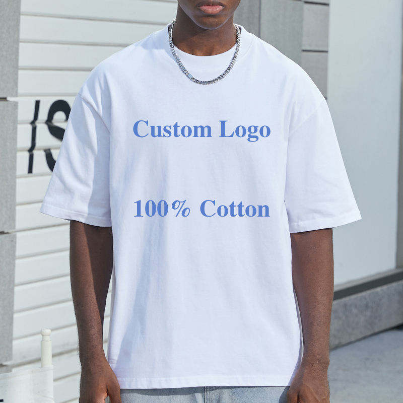 เสื้อยืดคอตตอนทรงโอเวอร์ไซส์คุณภาพสูง แบบเรียบ สีพื้น พิมพ์ลายโลโก้ด้านหน้า ระบายอากาศได้ดี สไตล์สตรีทแวร์สำหรับผู้ชาย สามารถสั่งทำได้