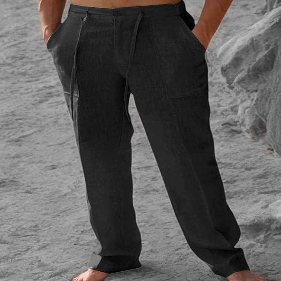 กางเกงแทร็คทรงตรงผ้าฝ้ายคุณภาพสูง น้ำหนักเบา สไตล์ลำลองสำหรับผู้ชาย ปรับแต่งได้ เอวยางยืด ระบายอากาศได้ดี