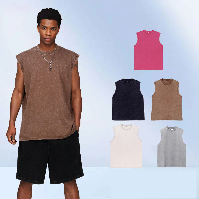 High Quality Blank Men tank Acid Washed Sleeveless T-shirt Sport Gym Acid Wash Top Men's Tank Tops T-shirt for men