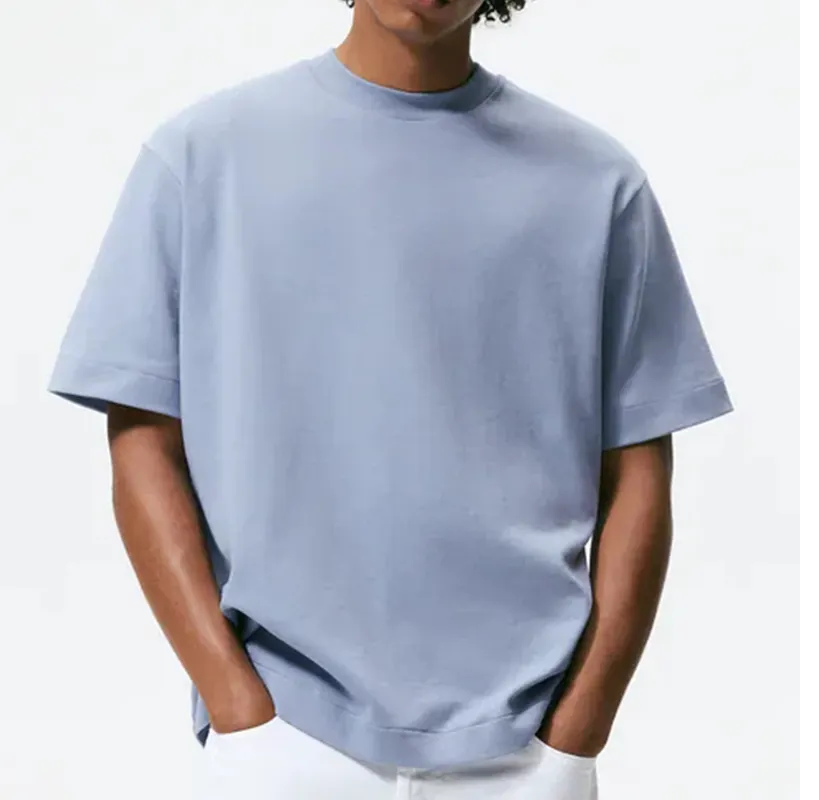 เสื้อยืดสีพื้นคุณภาพสูงสำหรับผู้ชาย เสื้อยืดผ้าไหมคอตตอนเท่ห์ๆ สวมใส่สบาย ระบายอากาศดี แขนสั้น รับสกรีนโลโก้บนผ้า