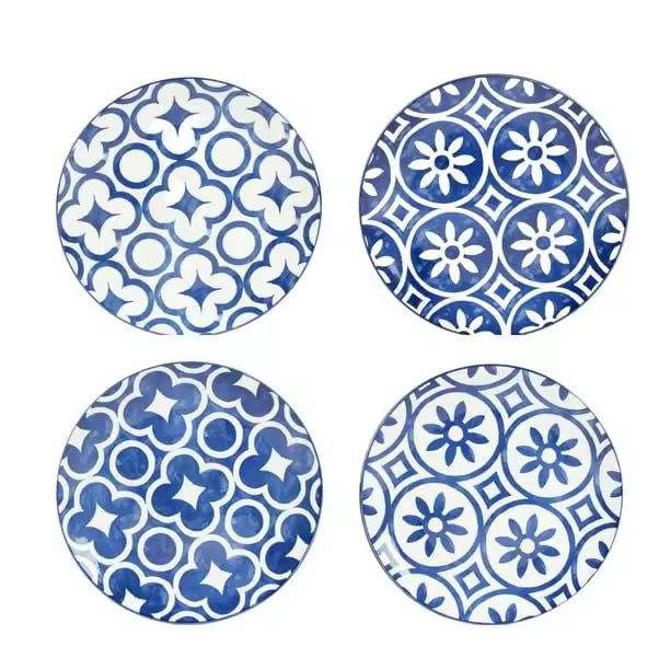จานเมลามีนลายพิมพ์ลายตามสั่งสีฟ้าจานกลมแบนสำหรับใช้ในบ้าน
