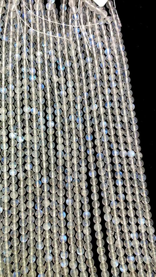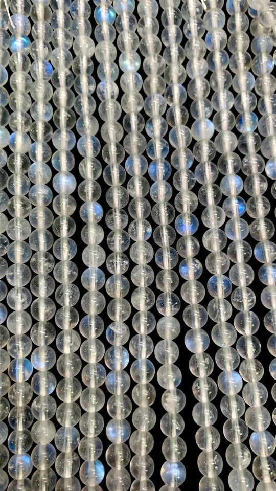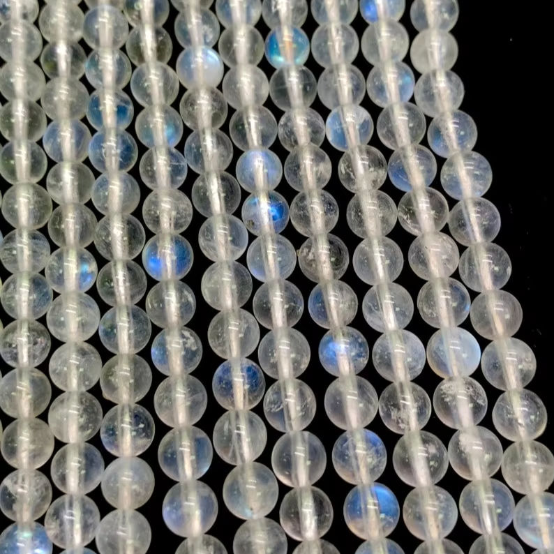 ลูกปัดมูนสโตนสีน้ำเงินไฟขาวรุ้งคุณภาพสูง หินธรรมชาติ ลูกบอลมูนสโตนสีน้ำเงิน ดีไซน์เมห์ราจูดิน เจมส์ สำหรับทำเครื่องประดับ