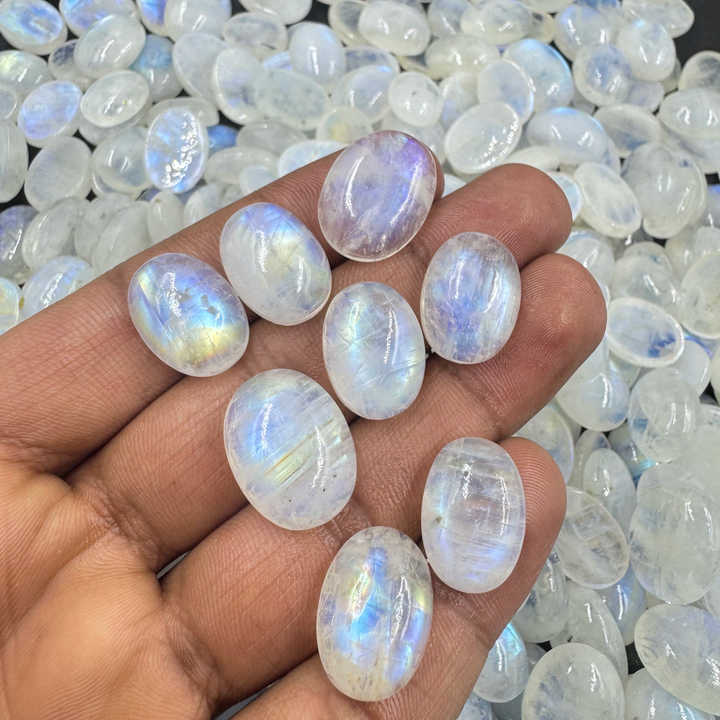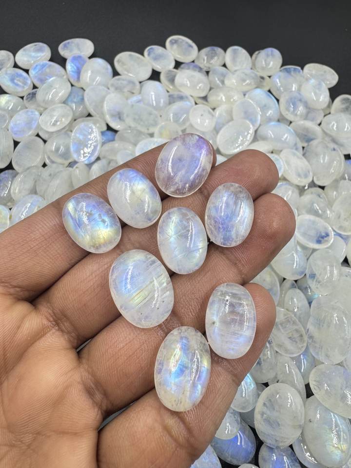 หินมูนสโตนสีน้ำเงินประกายแวววาว10x14mm-15x20mm รูปไข่ทรงหลวมเรียบเป็นธรรมชาติสำหรับทำเครื่องประดับ