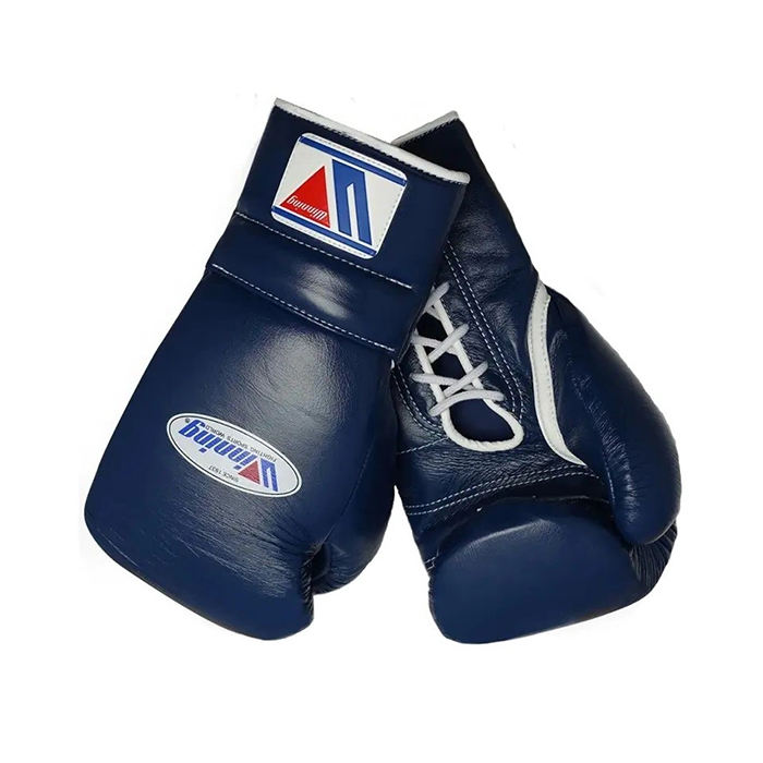 ชุดถุงมือชกมวยหนังแท้สีฟ้าผูกเชือกชุดชกมวย MMA มวยไทยแข่งขันแข่งขันกีฬามวยไทย