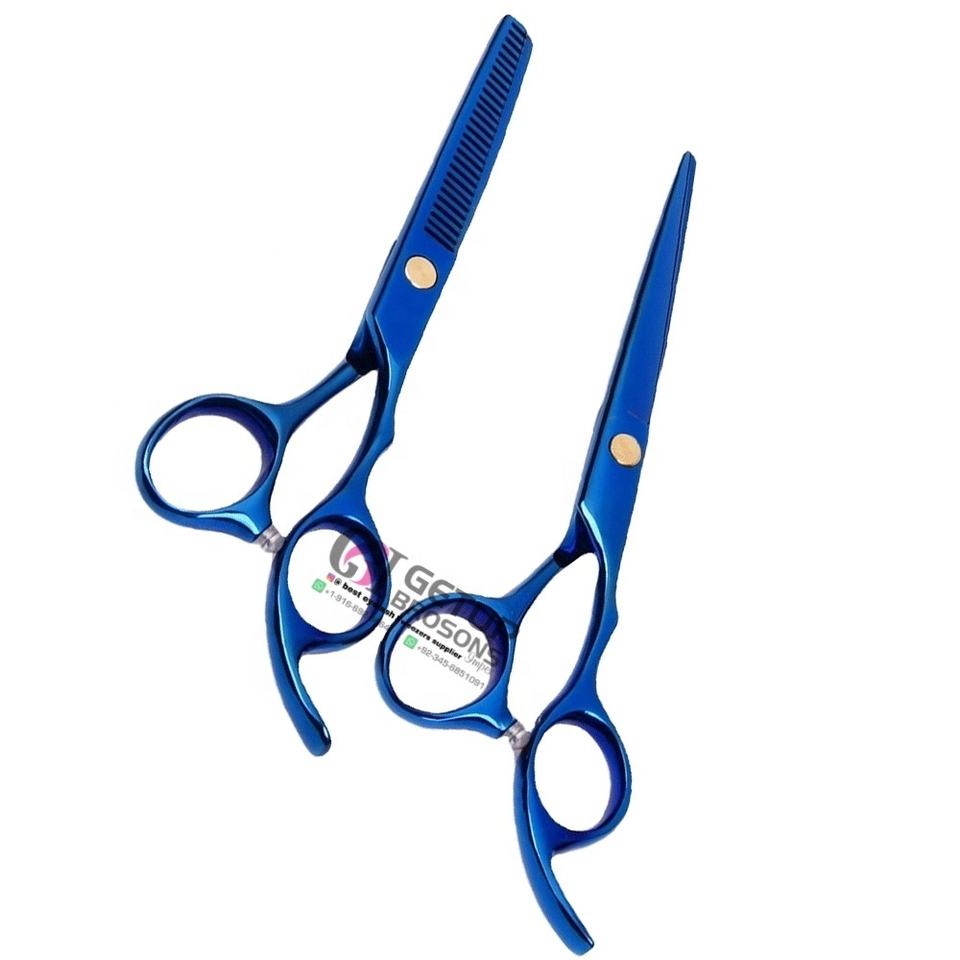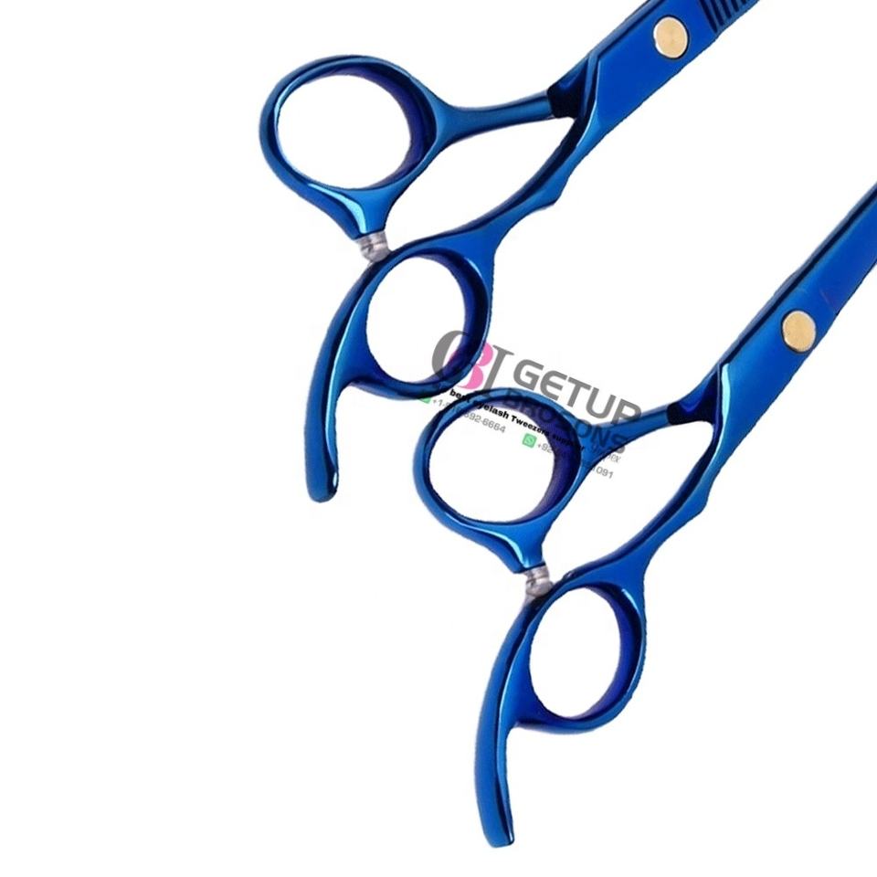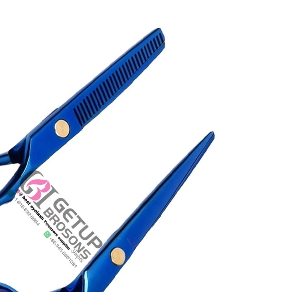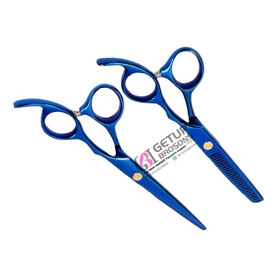 High Quality Blue Plasma Stylish Right-Handed Ceramic Handle Stainless Steel Barber Hair Thinning Scissors Custom Logo Beauty