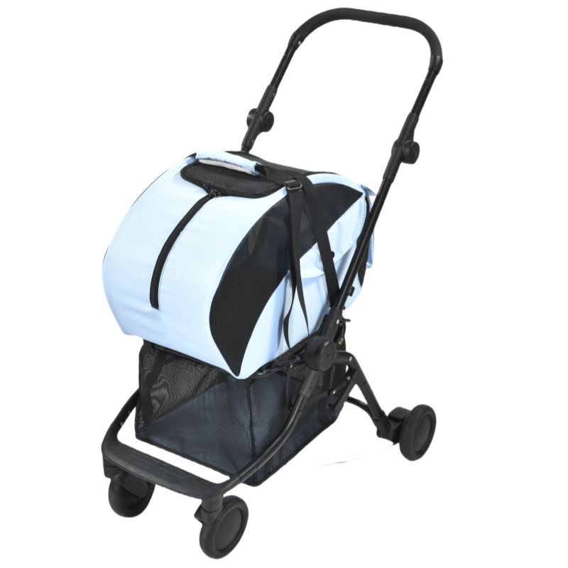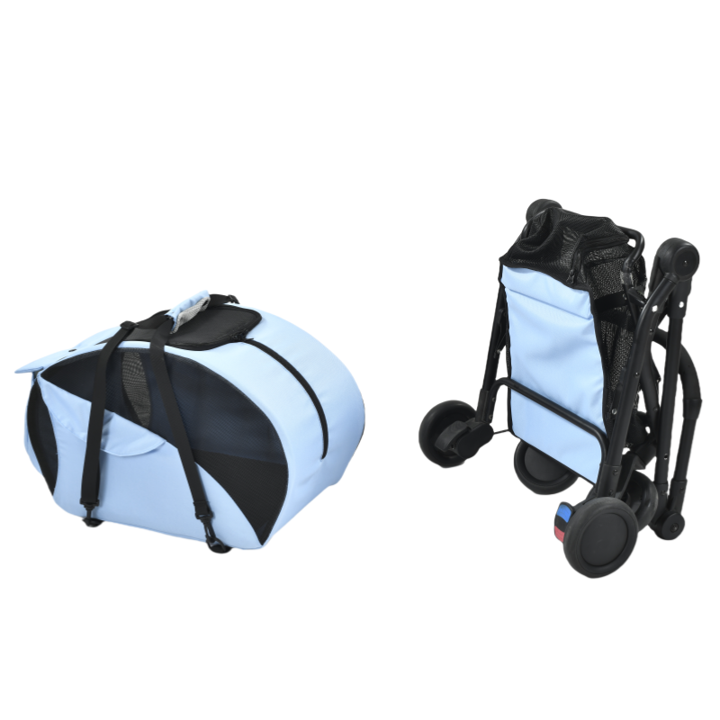 รถเข็นใส่สัตว์เลี้ยง4ล้อแบบพกพาสำหรับสุนัขและแมวรถเข็นเดินทางสีฟ้า