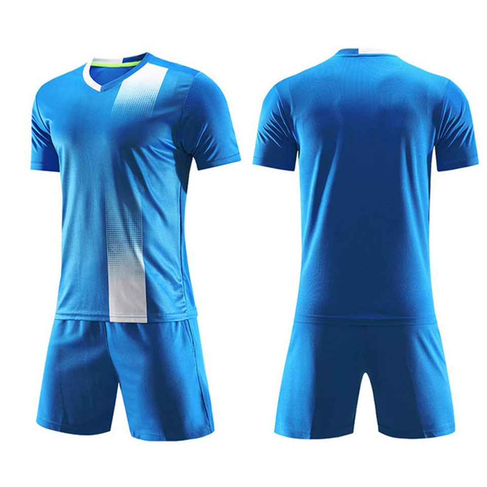 ชุดฟุตบอลสีฟ้าชุดเสื้อกีฬาแขนสั้นน้ำหนักเบาชุดฟุตบอลโพลีเอสเตอร์ออกแบบโลโก้ทีมได้ตามต้องการ