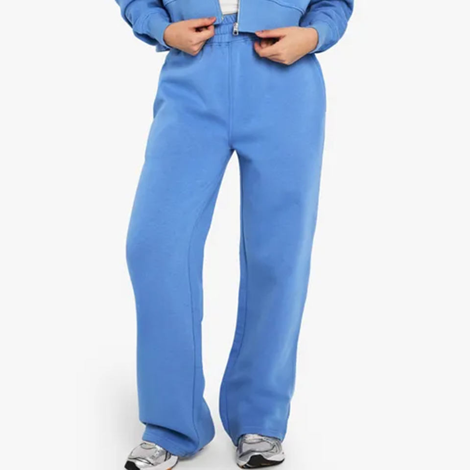 กางเกงวิ่งขาบานสำหรับผู้หญิงผ้าขนแกะผ้าสัมผัสนุ่มสำหรับ100% กางเกงและกางเกงขายาวของผู้หญิงสีฟ้า
