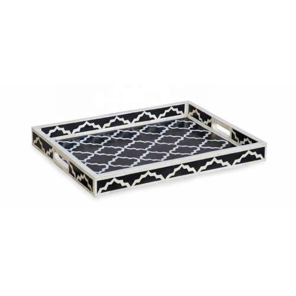 ถาดทรงสี่เหลี่ยมฝังกระดูกสำหรับโรงแรมถาดรองนั่งโต๊ะกาแฟถาดตกแต่งสำหรับห้องนั่งเล่น