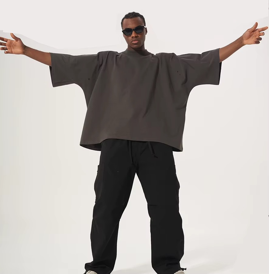 เสื้อยืดผ้าฝ้ายแบบสตรีทแวร์ไซส์ใหญ่พิเศษเสื้อยืดทรงหลวม