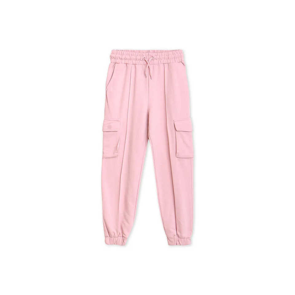 กางเกงคาร์โก้เทอร์รี่สำหรับผู้หญิงกางเกงลำลองสีชมพูขนาดใหญ่พิเศษพิมพ์ลายขากว้างสไตล์สปอร์ตสำหรับฤดูใบไม้ร่วง