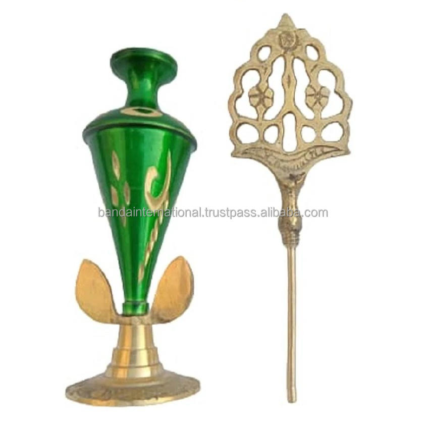 หม้ออายไลเนอร์ทองเหลืองพร้อมแท่ง surmedani สีทองและสีดำสำหรับเก็บ Surma ขวดใช้แต่งตา