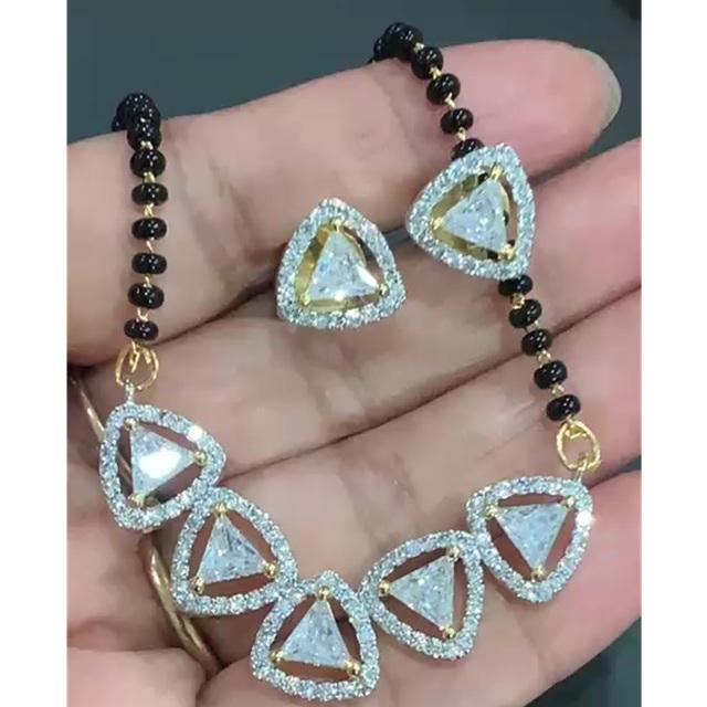ชุดสร้อยคอพร้อมต่างหูประดับเพชรซิร์คอนชุบทองเหลืองคุณภาพสูง ดีไซน์แบบมังกัลสุตร สำหรับผู้หญิง เหมาะสำหรับงานปาร์ตี้ งานหมั้น งานแต่งงาน และใช้ในชีวิตประจำวัน