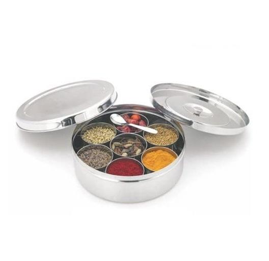 ที่มีคุณภาพสูงออกแบบโดยใช้ค้อนทองเหลืองพร้อมลูกบิดกลม7ชามภาชนะปรุงอาหารกล่อง Masala Organizer ห้องครัวโรงแรม