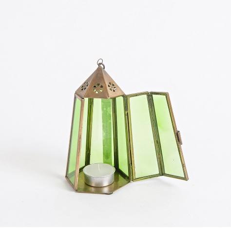 โคมไฟทองเหลืองสีเขียวแบบแขวนตกแต่งสำหรับห้องนั่งเล่นบ้านเทศกาลคริสต์มาสอีสเตอร์งานแฮนด์เมดเป็นมิตรต่อสิ่งแวดล้อม