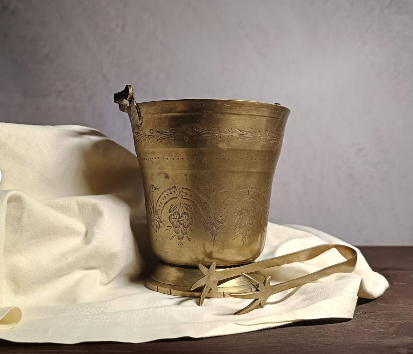 ถังน้ำแข็งเบียร์โลหะทองเหลืองถังน้ำดื่มสีทอง