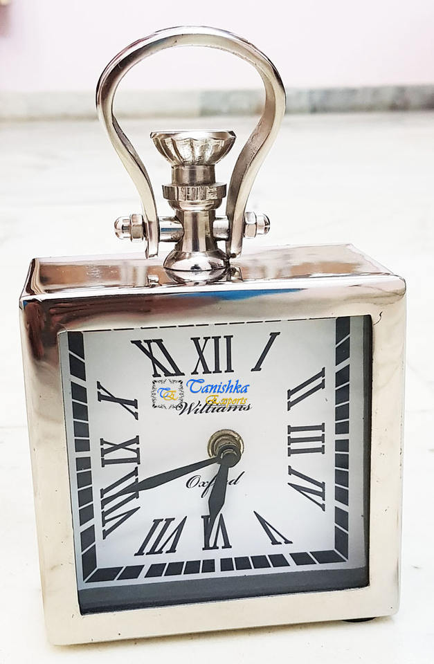 นาฬิกาตั้งโต๊ะสี่เหลี่ยมประดับด้วยทองเหลืองชุบนิกเกิลแบบโมเดิร์นพร้อมตัวเลขโรมันสำหรับตกแต่งบ้านและสำนักงาน