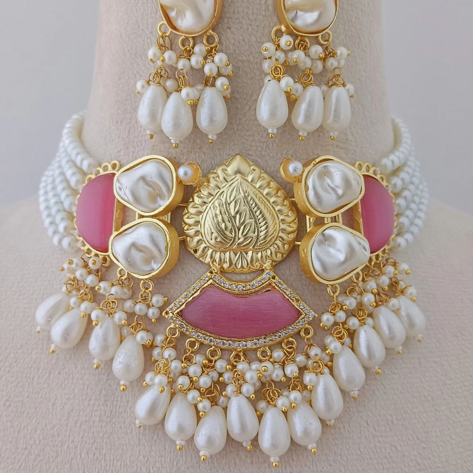 ชุดสร้อยคอทองเหลืองคุณภาพสูงพร้อมเอฟเฟกต์ไข่มุกหลอมเหลวลายทองสายโซ่ไม้ไผ่ออกแบบได้ตามต้องการ