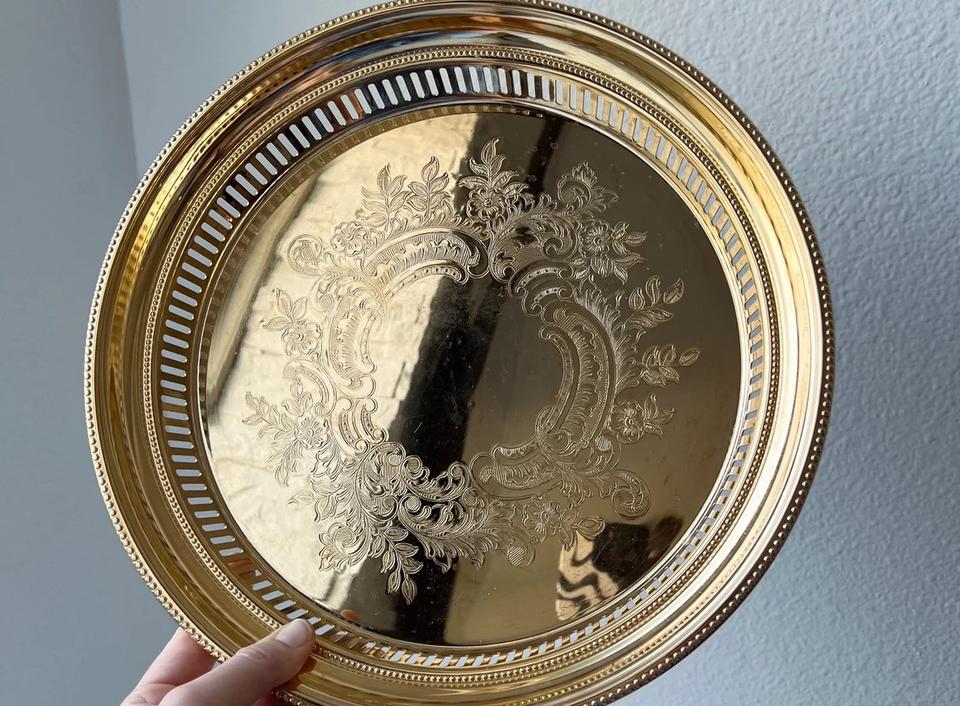 ถาดเสิร์ฟทองเหลืองคุณภาพสูงสำหรับการเฉลิมฉลองอย่างยิ่งและการจัดเลี้ยงในงานกิจกรรมพิเศษที่มีรายละเอียดทางศิลปะที่ซับซ้อน